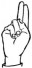 На ћирилици написано МИЛУТИН КЛЕПАЦ састоји се из 13 слова [?]. Исписано ћириличном једноручном азбуком за глувонеме: